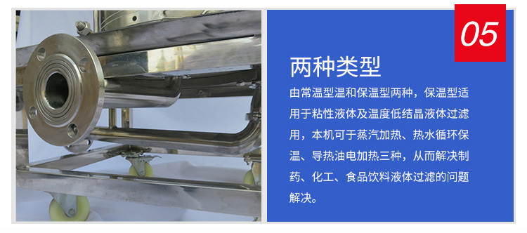 本機(jī)(保溫型和常溫型)全封閉環(huán)保型層疊式板框過(guò)濾機(jī)(器)是新研發(fā)的一種新型固液分離的液體過(guò)濾機(jī)(器),經(jīng)我廠多年來(lái)生產(chǎn)過(guò)濾器的實(shí)踐經(jīng)驗(yàn)制造而成的,本機(jī)廣泛運(yùn)用于化工、醫(yī)藥、石油環(huán)保等行業(yè),對(duì)各類液體中微小雜質(zhì)進(jìn)行過(guò)濾、澄清,提純處理的理想的固液分離設(shè)備。