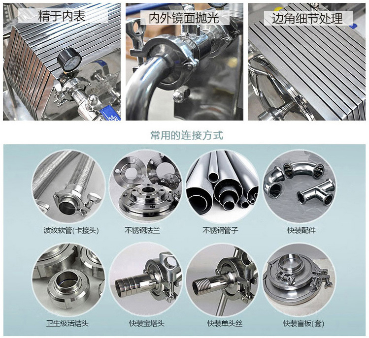 不銹鋼層疊式板框過(guò)濾器是新研發(fā)的一種新型層疊式板框液體過(guò)濾器,經(jīng)我廠多年來(lái)生產(chǎn)過(guò)濾器的實(shí)踐經(jīng)驗(yàn)制造而成的,本機(jī)廣泛運(yùn)用于化工、醫(yī)藥、石油環(huán)保等行業(yè),對(duì)各類液體中微小雜質(zhì)進(jìn)行過(guò)濾、澄清,提純處理的新設(shè)備。用于脫粉末狀活性炭,是理想的設(shè)備,本機(jī)采用304或316L不銹鋼材料制造,本機(jī)內(nèi)外拋光達(dá)400目,符合Gmp標(biāo)準(zhǔn),工藝制作精良,性能安全穩(wěn)定,抗腐蝕,經(jīng)久耐用,結(jié)構(gòu)新穎,操作簡(jiǎn)便,靈活節(jié)能,適應(yīng)性強(qiáng)的多用途過(guò)濾設(shè)備。(本機(jī)可以初濾,脫碳、深層過(guò)濾、,半精濾,精濾) 本機(jī)過(guò)濾裝置是由多層重疊過(guò)濾網(wǎng)板和過(guò)濾框組成,網(wǎng)板孔由電腦打孔,孔密小均勻,這可保證每層過(guò)濾網(wǎng)板上的濾材壓力均勻,使過(guò)濾精度優(yōu),原液體經(jīng)過(guò)加壓進(jìn)入筒體內(nèi),從過(guò)濾框四周孔進(jìn)入,再經(jīng)網(wǎng)板上的過(guò)濾介質(zhì)從網(wǎng)板中心多個(gè)小孔出來(lái),合格液體排出。