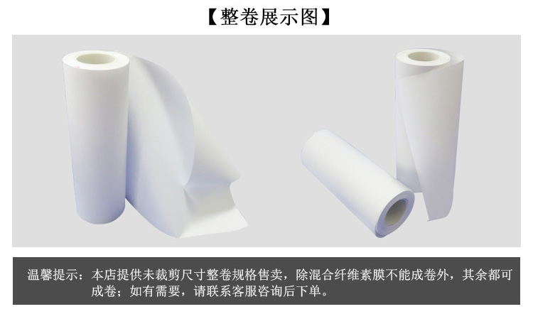 本品入水后顯著變脆,入有機溶劑強度的減少則輕些,故本品的使用應在膜下墊60-100目尼龍網或金屬網,可無膜破之虞。
