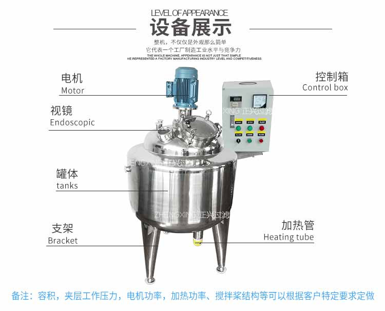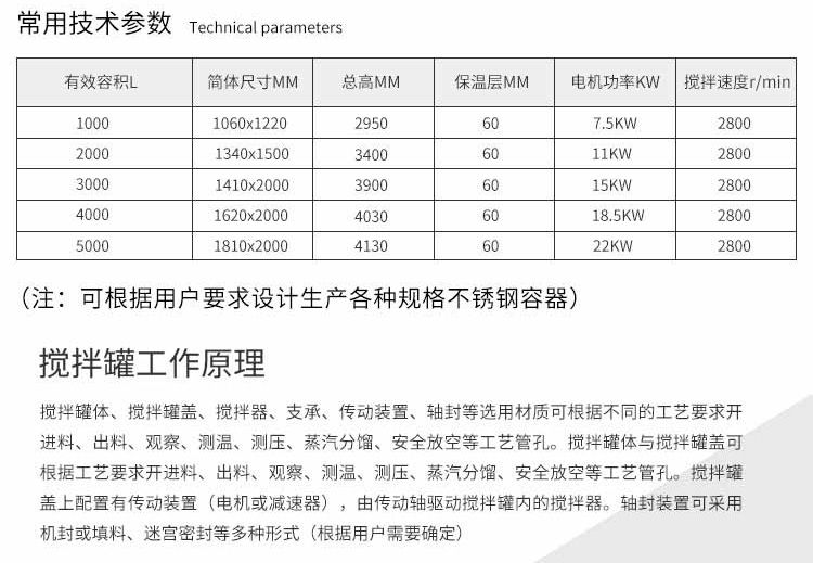 1、容積:50L、100L、200L、300L、500L、600L、1000L~5000L(可根據客戶需要按需定制,各種非標設計)。