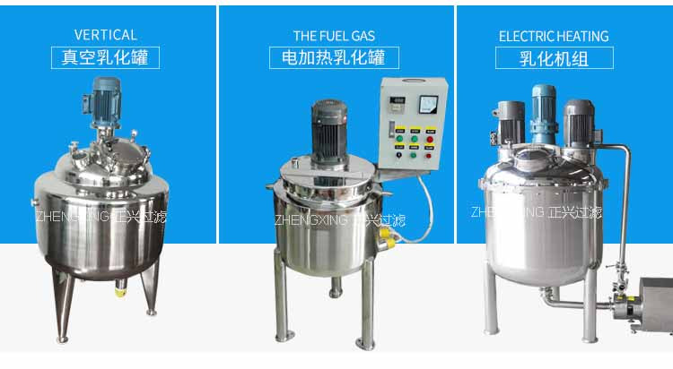 乳化罐主要是通過攪拌操作將物料混合達到工藝生產的要求,是制藥、生物工程、食品、飲料、果酒、調味品、精細化工、油脂等行業中常用的中間緩沖、儲液、攪拌、調配、反應的必須設備。乳化罐也可以根據工藝的要求在配料的過程中添加某些溶酶或其他的混合介質。乳化罐通過增設加熱層、保溫層、冷卻裝置、恒溫控制裝置等可以實現反應混合所需要的升溫、恒溫、降溫、保溫等工藝工程,而且可根據自動化程度的要求,配備不同配置的電控箱。