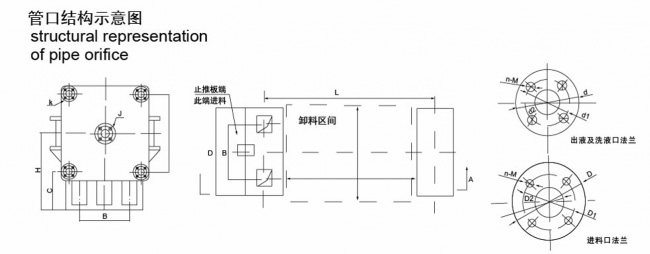 工作前將濾布套在濾板上,然后操作壓濾機,驅動壓緊桿,將壓緊板緊緊地壓緊濾板。啟動進料泵將物料通過進料口輸入壓濾機,物料通過濾板上的通道進入濾室,在進料泵壓力的作用下,清液透過濾布進入濾板上密布的圓點式濾面。再通過濾板上的通道進入出液口匯集后由出液口流出。而濾餅被截留在濾室中,直至濾餅充滿濾室,然后停止進料泵,松開壓緊板,再將濾板一塊一塊地拉往壓緊板方向卸掉框中的濾餅,再重新進入下一個工作循環。