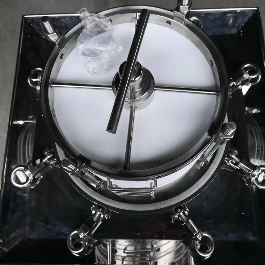 全封閉粉末活性炭過濾機是新研發的一種新型層疊式板框液體過濾器,經我廠多年來生產過濾器的實踐經驗制造而成的,本機廣泛運用于化工、醫藥、石油環保等行業,對各類液體中微小雜質進行過濾、澄清,提純處理的新設備。用于脫粉末狀活性炭,是理想的設備,本機采用304或316L不銹鋼材料制造,本機內外拋光達400目,符合Gmp標準,工藝制作精良,性能安全穩定,抗腐蝕,經久耐用,結構新穎,操作簡便,靈活節能,適應性強的多用途過濾設備。(本機可以初濾,脫碳、深層過濾、,半精濾,精濾) 本機過濾裝置是由多層重疊過濾網板和過濾框組成,網板孔由電腦打孔,孔密小均勻,這可保證每層過濾網板上的濾材壓力均勻,使過濾精度優,原液體經過加壓進入筒體內,從過濾框四周孔進入,再經網板上的過濾介質從網板中心多個小孔出來,合格液體排出。