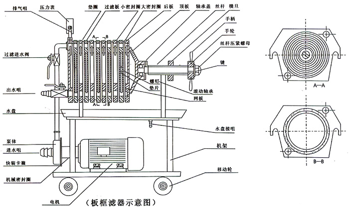 本機為不銹鋼多層板框壓濾機,適用于濃度50%以下粘度較低,含渣量較少的液體作密閉過濾以達到提純,滅菌、澄清等精濾、脫活性碳、除微粒、半精濾的要求,直接選用微孔濾膜,可不經(jīng)微孔薄膜過濾器過濾可達到無菌過濾之目的)。本機過濾面積大,流量大,適用范圍大,所以在制藥、化工、食品等行業(yè)有廣泛用途,應用在制藥廠針劑藥液之過濾,效果甚佳。