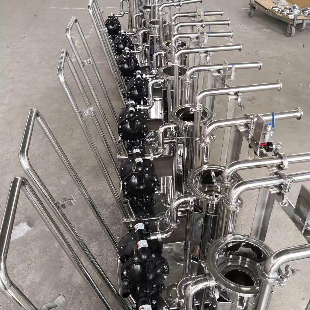 過濾機壓力一般調(diào)在0.1-0.3MPa比較合適,可通過回流管路或泵上回流閥來調(diào)節(jié),過濾壓力過高會損壞濾袋以及保護網(wǎng),需格外注意。